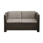 Set di mobili in resina, modello Diva Confor, per arredare spazi esterni come giardini e terrazze. Mobili di alta qualità, senza componenti metallici per prevenirne l’ossidazione, realizzati con materiali riciclati, resistenti ai raggi UV e alle intemperie. Set composto da un divano a due posti, due sedute singole, sedute e schienale e un tavolino basso. Colore: Grafite. Dimensioni del divano (AxPxL): 72x66x74 cm. Dimensioni del divano (AxPxL): 72x66x132 cm. Dimensioni del tavolo (AxPxL): 34x57x57 cm.